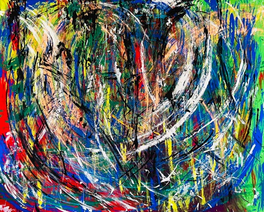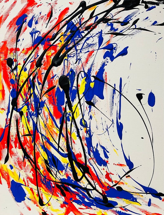 私の作品は、救いを芸術に変え、その方法と効果について議論することを目指しています。バックボーンは占い師としての仕事上、現代社会に於ける人々の悩みや、不安、苦しみの相談を受け止め、多くの人々が「未来の希望」ではなく、現状の悩みや苦しみからの「救い」を求めている。テーマは占い師として言葉で救いをアーティストとして作品で救いを悩み苦しむ人々の救いを支援することです。このテーマに対して、私は独自の芸術的アプローチを開発しました。その技法はアクションペインティングとスパースペインティングの組み合わせです。アクションペインティングは衝動的な筆使いを特徴とし、スパースペインティングは疎かで希薄な表現を特徴とします。これらの技法を組み合わせることで、激情の中の静寂を画面上で展開し、観る人に安らぎと静けさを感じさせることを意図しています