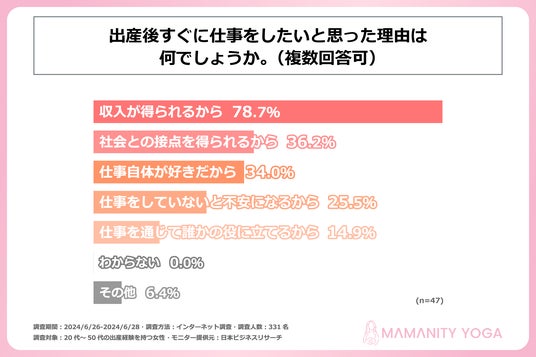 出産後、仕事を再開したいと思った理由の1位は「収入が得られるから」