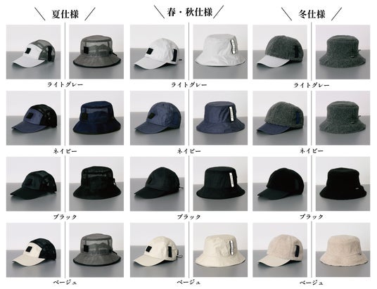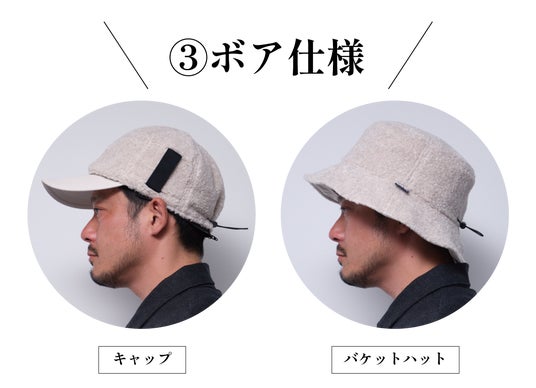 ※キャップ・バケットハットはそれぞれ別々の帽子になります。