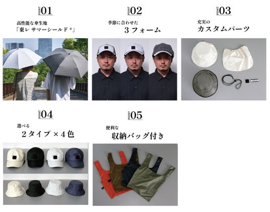 SNSで話題の日傘生地「東レ サマーシールド(R)️」を採用し、熱・光・紫外線から守る!季節・天候に合わせてトランスフォーム(変身)する帽子