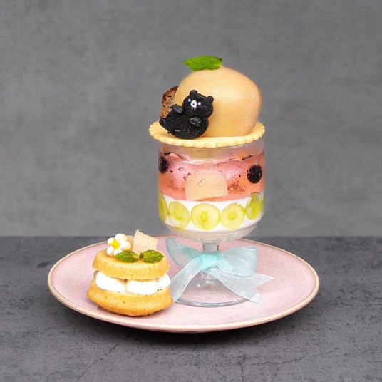 インスタ映え間違いなし「くったりさぼうくんの桃パフェプレート/さぼうくんのミニスイーツ」