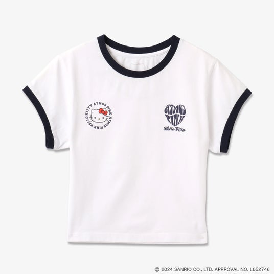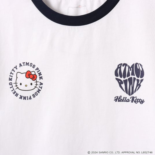 キャッチーな配色のRinger T-shirtは、胸元に左右それぞれatmos pinkのハートロゴ、ハローキティの顔がプリントで配置され、クロップド丈はトレンド感のあるアイテムです。