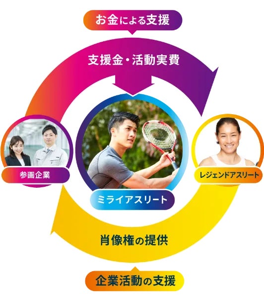 企業とアスリートの相互支援型社会貢献活動を通じて、夢を諦めることなく挑戦し続けるアスリートたちを支援し、日本のスポーツ界の未来を共に創り上げていきます。