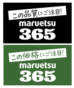 当社が自信を持ってお客さまのために厳選した商品を、『maruetsu365』として、食品から日用品まで各売場で展開いたします。こだわりの品質の商品は「黒」で、お手頃な価格の商品は「緑」のPOPを目印として、お客さまに分かりやすくご案内いたします。