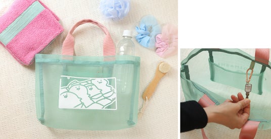 通気性のよいメッシュを使用。日常使いはもちろん、キャンプやピクニック、サウナやジムなどで大活躍。内側のループにはナスカンやカギなどを付けておくことができます