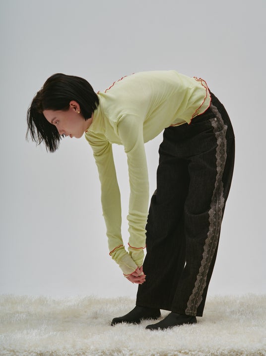 Comfortable decorationをテーマに軽さや肌触りを重視した着心地の良い素材を使用し、気分が上がるような装飾性を持ち合わせたアイテムを提案します。 リサイクルマテリアルを使用した軽量のシャギー素材のアウターや、抜染によって柄を描いたデニムシリーズなど、この秋冬一押しのアイテムが揃いました。