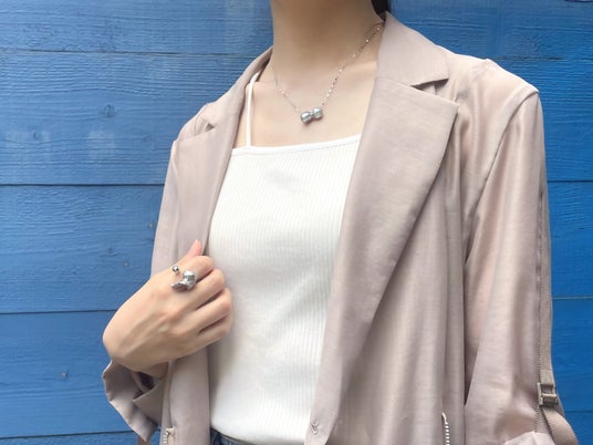 淡水ケシ真珠 チョーカー/ネックレス ¥33,000 / 淡水ケシ真珠 ピンキーリング ¥25,300