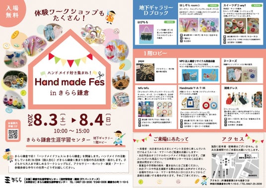 ハンドメイド好き集まれ! きらら鎌倉生涯学習センターで初「ハンドメイドフェス inきらら鎌倉」を8月3日(土)4日(日)に開催します!