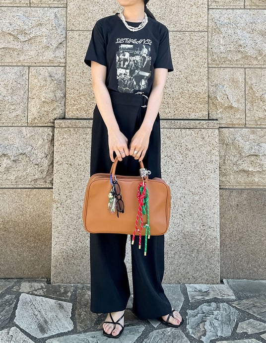 バントTシャツならではの、ロックなインパクトを残しつつも、きれいめコーデにもマッチ。