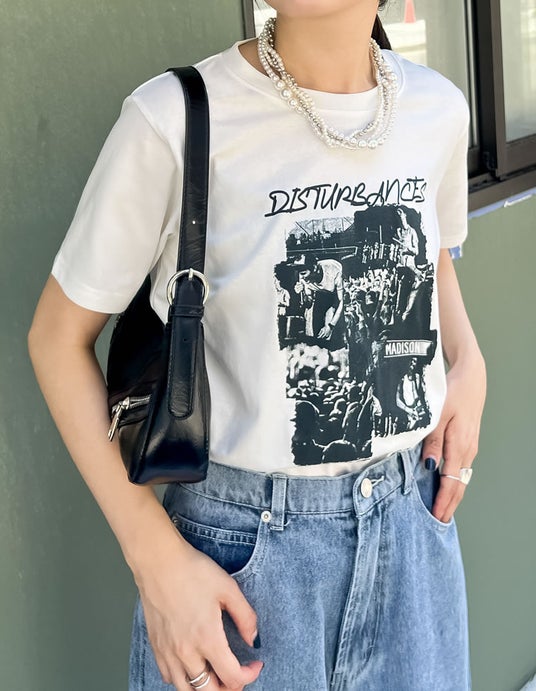 今季は特にヴィンテージ感のあるバンドTが大人気の中、デザインによっては子供っぽくなったり、メンズライクになり過ぎたりと、大人の女性が着るには挑戦しにくいデザインも多々。
