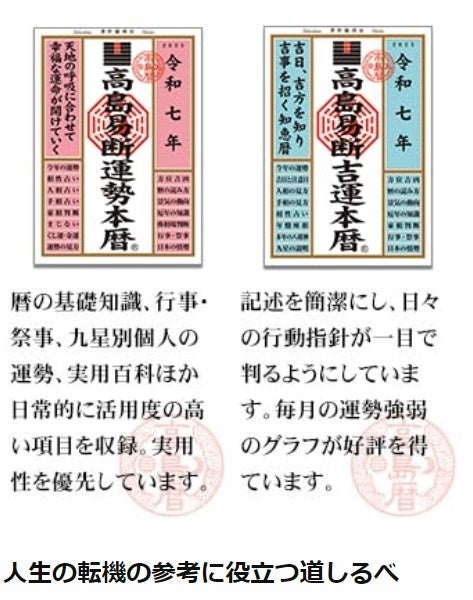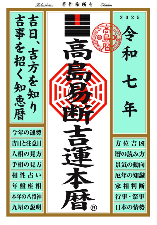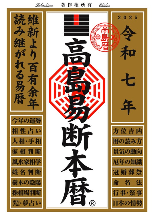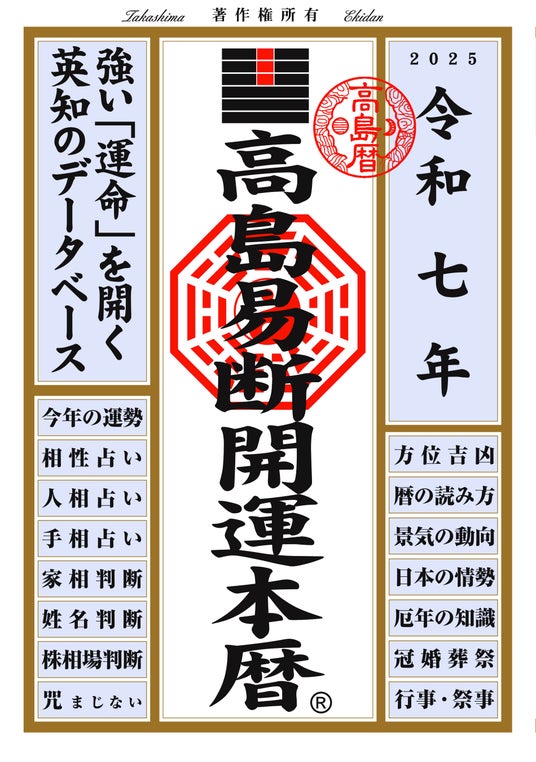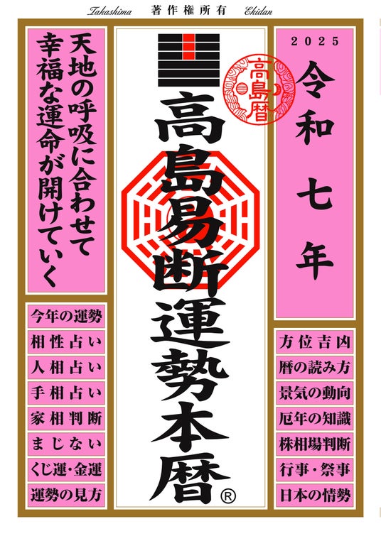 『令和七年 高島易断本暦』シリーズは、あなたの未来を明るく照らし、運命を開くための強力なツールとなることでしょう。ぜひ、この機会に手に取ってみてください。