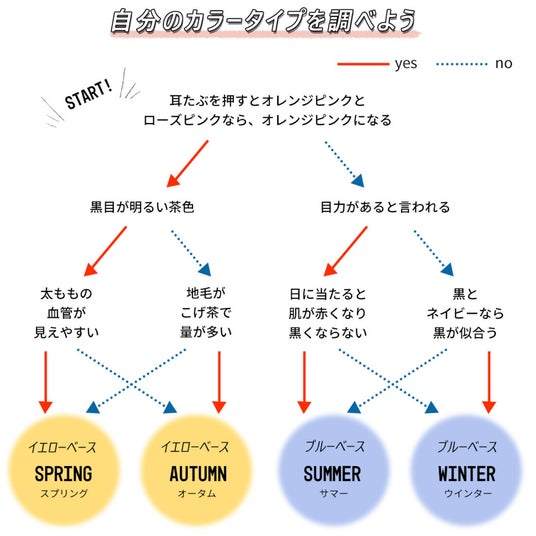 自分のカラータイプが分からないという方は上の画像の質問に答えて診断することができますよ。