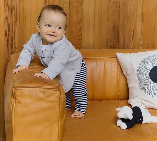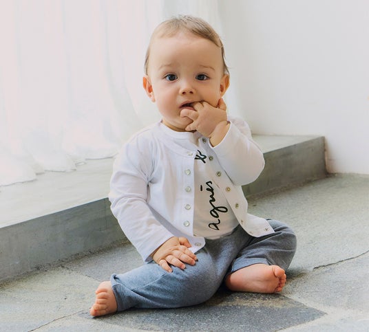アニエスベーのカーディガンプレッションは、「大人のための子ども服」を作ろうとアニエスがスウェットを前開きにしてデザインしたもの。ブランドの代名詞ともいえるボーダーなどベビーアイテムにもアニエスべーのエッセンスが詰め込まれています。肌に優しく、環境にも配慮した上質な素材を使用しており、長くご着用いただくことができるとともに、サイズアウトしたアイテムをご家族やご友人などにバトンタッチしていただけます。