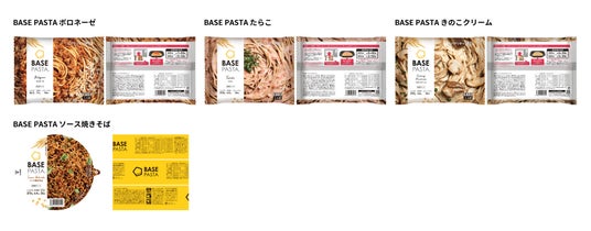 *1 1食分(BASE BREADは2袋、BASE PASTAは1袋、BASE Cookiesは4袋、BASE FOOD Deliは1袋)で、栄養素等表示基準値に基づき、脂質・飽和脂肪酸・炭水化物・ナトリウム以外のすべての栄養素で1日分の基準値の1/3以上を含む