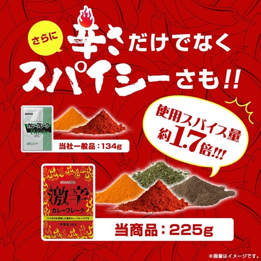 株式会社カネカサンスパイス(本社:大阪市淀川区、代表取締役:岡田博之)は、先行して販売しているSPANION「カレーフレーク※(中辛)」のシリーズ品として、「激辛カレーフレーク※」を、2024年7月23日にEC、業務用市場で同時発売します。