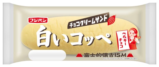 ソフトでふんわりとした白いパン生地に、ベルギー産チョコレートを使用したチョコクリームを使用。夏でもさっぱりと食べられるくちどけの良いチョコクリームにこだわりました。パンの白とチョコクリームのコントラストが目を引きます。パッケージには白を基調とし、フジパン売上N0.1菓子パンの「黒コッペ」との対比を考えたデザインに仕上げています。