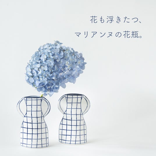 雨の多い季節。しっとりとした風景に、マリアンヌ・ハルバーグの花瓶がひときわ映えます。瀬戸焼の技術で丁寧に作られたこの花瓶に、あじさいを生けてみませんか。チェックとローズの、ひとつ違いの姉妹のようなカップも入りました。雨を背景に、新しい花を見ながら、お茶の時間にしませんか。(特設サイトより)