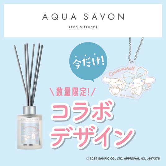 フレグランス、時計、ファッション雑貨等のブランドを取り扱う専門商社である株式会社ウエニ貿易(本社:東京都台東区、代表取締役社長:宮上光喜)は、せっけんの香りをテーマにしたコスメティックブランド「アクアシャボン(https://aquasavon.jp/)」から、株式会社サンリオの「シナモロール」「クロミ」とコラボレーションした「リードディフューザー」を7月23日(火)に公式オンラインストア先行発売、8月20日(火)に一般発売いたします。アクア シャボンから人気の「ウォータリーシャンプーの香り」「大好きなせっけんの香り」の2種類を使用し、ナチュラルなシャボンの香りでお部屋を包み込みます。(芳香期間約2ヵ月 ※2)