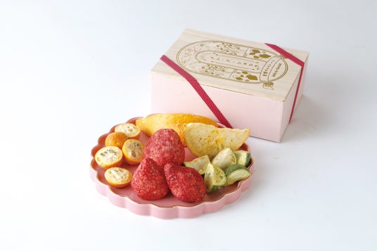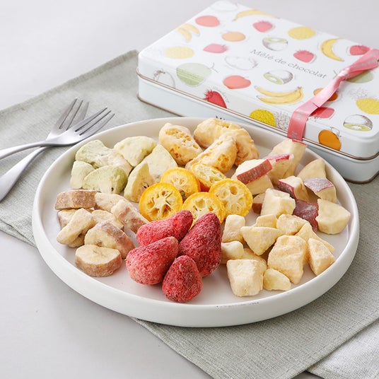 1番人気のストロベリーと4種のフルーツをペアにした個包装を4種・計6袋を桐蓋のパッケージにアソートしました。ストロベリーとバナナ、メロン、キウイ、メロン、アップル 5種のフルーツが楽しめます。シェアできるのでちょっとした手土産やプレゼントにおすすめです。他にも大容量入りのギフトセットのご用意もあります。