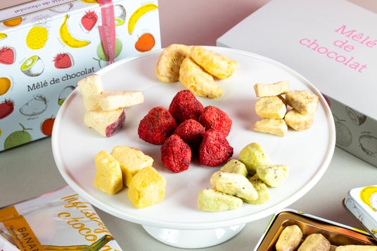 メレ・ド・ショコラ「オカシな果実&」をキャッチフレーズに、フリーズドライしたフルーツに含浸製法でフルーツの中までチョコレートを浸み込ませた果実とチョコレートの絶妙なハーモニーが楽しめる新食感のしみこみショコラブランドです。果実なのにホロッ、チョコなのにサクッ!フルーツの爽やかな果実感から滑らかで濃厚な舌触りへと変化をお楽しみください。
