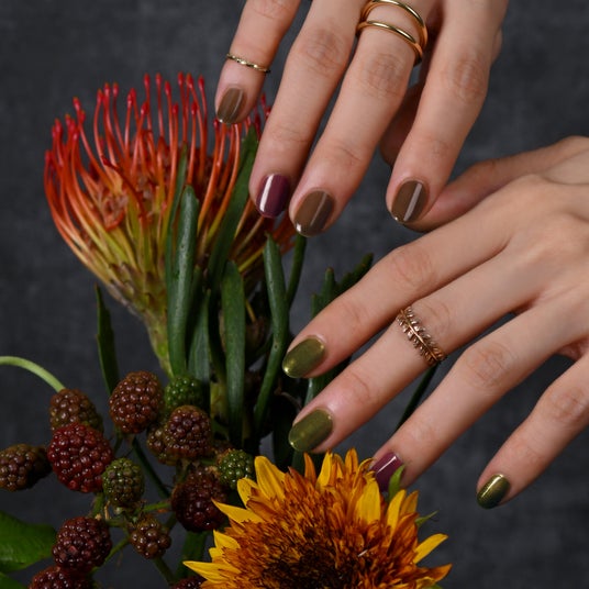 透け感があるブラウングレーで、秋らしい深みのあるお色ながらも透明感の美しいお色です。指先を柔らかく優しいお色で彩ってくれます。