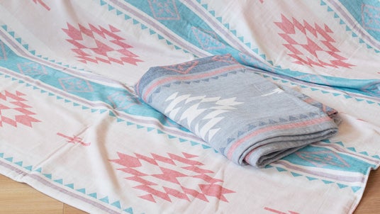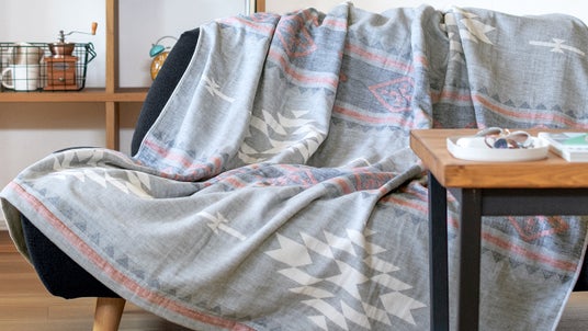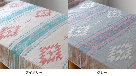 ガーゼの優しい雰囲気を損なわないオルテガ柄風のガーゼパイルケット。