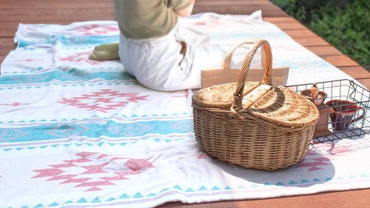 アウトドアとも相性の良いデザインなのでキャンプやピクニックのラグとして使用するのもおしゃれ。