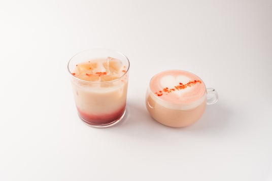 <左:ベリーオーツミルクラテ(アイス)、右:同(ホット)>