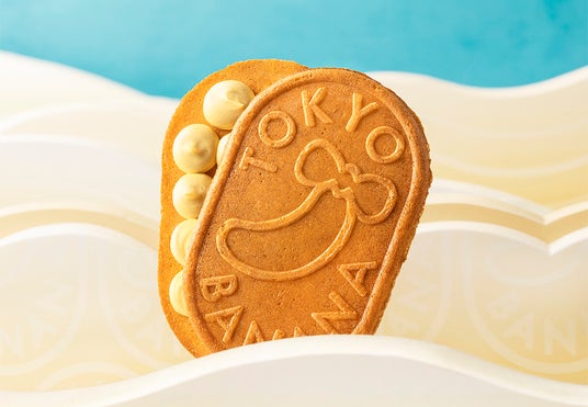 バナナとアーモンドを練り込んだオリジナルのクリスピー生地はサクッと軽やか。ウエハースやゴーフレットとも違う、とってもクリスピーなサクサク食感にこだわりました。生地に描かれた東京ばな奈ちゃんがとってもキュート!
