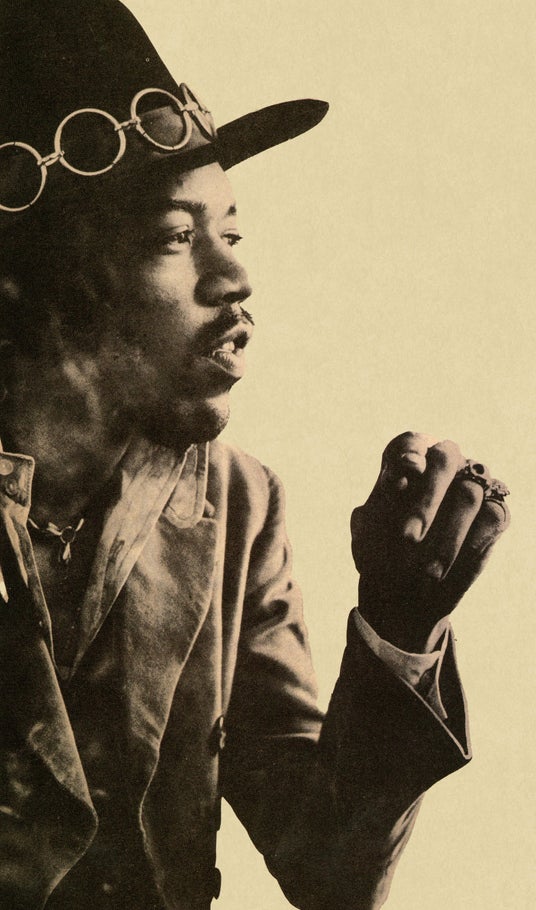 アメリカ出身のギタリストおよびシンガーソングライター。日本では「ジミヘン」の愛称で親しまれました。1966年にイギリスのミュージシャンに才能を見出され渡英し、バンド「ザ・ジミ・ヘンドリックス・エクスペリエンス」を結成。同年末にシングル「ヘイ・ジョー」でレコード・デビューを果たしました。珠玉の曲の数々を作り出し、左利きながら右利き用のギターを逆にして演奏する手法やライブ中の過激なパフォーマンスなどで観客を圧倒し、熱狂的なファンを獲得し、世界を魅了していきました。27歳という若さでこの世を去るまでのわずか4年という活動期間でしたが、伝説的な存在となり没後も色褪せることなく高い評価と人気を保っています。2011年に発表されたローリング・ストーン誌が選ぶ「歴史上最も偉大なギタリスト100人」(改訂版)では第一位に選出されました。