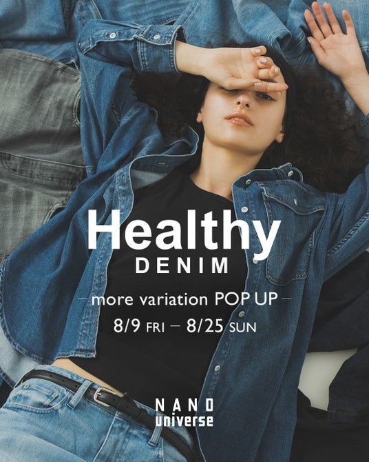 2024年8月9日(金)~2024年8月25日(日)の期間、ナノ・ユニバース ルミネ有楽町店とルミネ新宿店でヘルシーデニムのモアバリエーションPOP UPを開催
