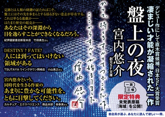 これまでにビジネス書や児童書で展開が実施されてきましたが、今回は文庫で初めての企画として宮内悠介さんの『盤上の夜』(創元SF文庫)が選ばれました。
