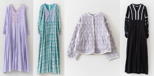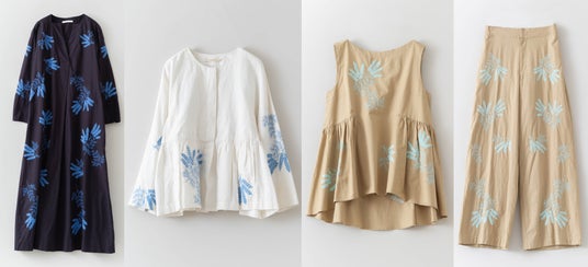 左から<COTTON LINEN PLANTS EMBROIDERY DRESS> ¥39,600-<COTTON LINEN PLANTS EMBROIDERY LONG SLEEVE BLOUSE> ¥33,000-<COTTON LINEN PLANTS EMBROIDERY SLEEELESS TOP> ¥30,800-<COTTON LINEN PLANTS EMBROIDERY SLEEELESS PANT> ¥30,800-