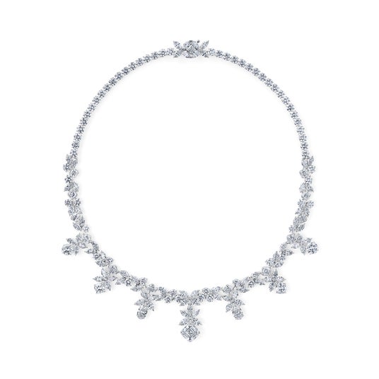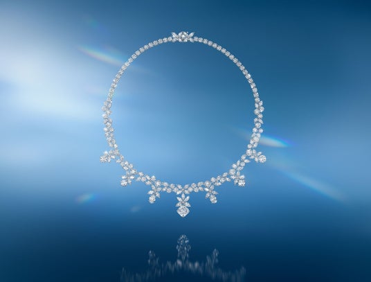 今回新たに登場したネックレスは、4種のシグニチャーカットダイヤモンドを贅沢に配置しています。ダイヤモンドに立体感を生み出す緻密なセッティングと、着用時に美しく首に沿うように考えられたデザインは、卓越したクオリティと優れたクラフトマンシップが融合した、極上のアートピースのようなジュエリーです。