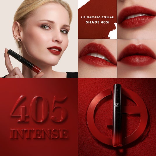 #405 Iは、「リップ マエストロ」のアイコニックなカラーであるリッチなオレンジレッドの#405にインスパイアされた本コレクションのための新色です。オリジナルのシェードよりさらに深い発色で、スタイルが宿るリッチな仕上がりに導きます。