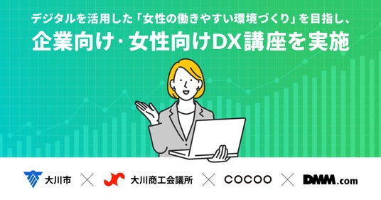 コクー株式会社(本社:東京都千代田区、代表取締役CEO:入江 雄介)は、福岡県 大川市(市長:倉重 良一、以下「大川市」)と、大川商工会議所(会頭:津村 洋一郎)及び合同会社DMM.com(本社:東京都港区、会長 兼 CEO:亀山 敬司、以下「DMM」 )と協働して、DX・デジタルマーケティングのセミナーや研修等「デジタル人材育成講座」を実施し、講座を通して、地元企業に向けたデジタル理解促進と女性のデジタル人材育成を行い、地元企業と女性デジタル人材とのマッチング・雇用創出につながることを目指します。