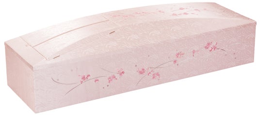 “故人らしい葬儀”を叶えることを目指して開発されたオリジナル棺です。従来の棺は中性的なデザインが主流である中、桜風は「散り際の桜」と「人生の儚さ」を重ね、美しく上品な女性の人生を棺に表現しました。流れるような曲線を取り入れた形状は、水や風といった自然の流れや、季節の移り変わりを表しています。また、仏衣や骨壺も同じテイストのものもご用意しております。
