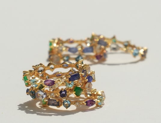 さまざまなブルー系の天然石のコンビネーションが美しい、フルエタニティのリング。