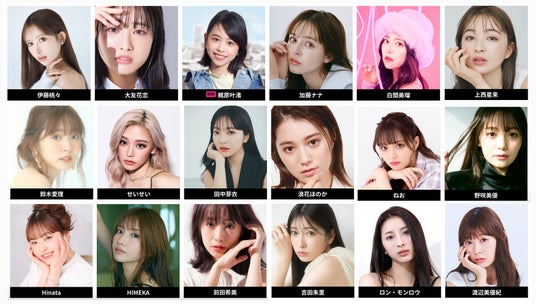 伊藤桃々、大友花恋、梶原叶渚、加藤ナナ、白間美瑠、上西星来、鈴木愛理、せいせい、田中芽衣、浪花ほのか、ねお、野咲美優、Hinata、HIMEKA、前田希美、吉田朱里、ロン・モンロウ、渡辺美優紀 and more
