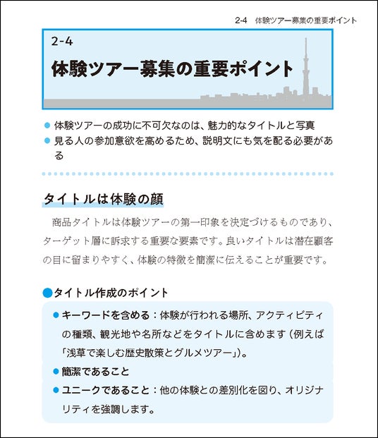 本書は、インバウンド、国内旅行者共に活況な、アクティビティなどの体験ツアーを開催したい人向けの手引書です。「旅程管理主任者」「旅行業務取扱管理者」などの資格を持たない個人の方や団体を対象としています。