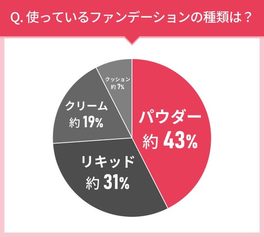 日常遣いでメイク直し用にも使えるパウダーが約43%、朝のメイク用に重宝するリキッドタイプが約31%でした。