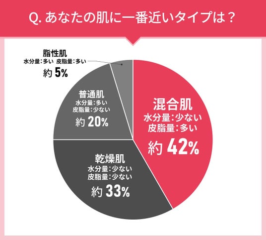 – 混合肌(水分量少ない/皮脂量多い):約42%