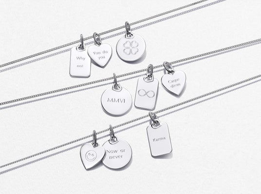 エングレービング可能な製品には、チャームやクラスプなど約15種類が、スターリングシルバー、ゴールドプレーティング、ローズゴールドプレーティングの3種類のカラーで揃います。刻印するフォントやシンボルを組み合わせて自分だけのスタイルを作ったり、友人やパートナーとの思い出作りや、ご家族、大切な人への贈り物としてもご利用いただけます。