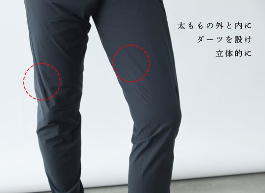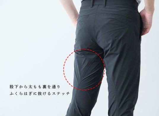 この特殊なシルエット・パターンによって、脚の稼働を邪魔することなく驚くほどスムース。