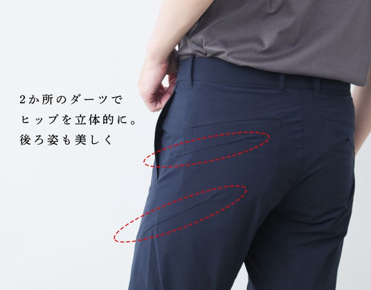 ヒップポケットの下にダーツを“2か所”入れることで立体的になり、お尻にきれいにフィット。