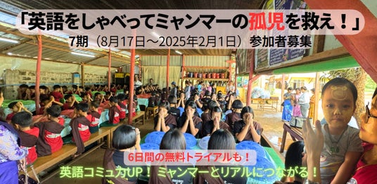 「英語をしゃべってミャンマーの孤児を救え!」7期に参加することで、ミャンマーの孤児たちの未来の可能性を広げる活動につながります。ぜひとも応援してください!