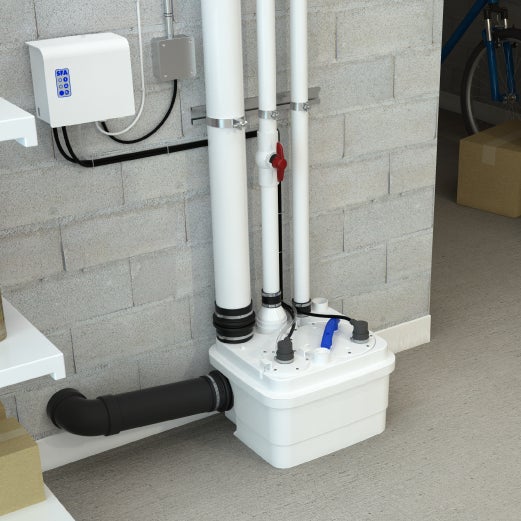 排水管の勾配が取れない場所で、大掛かりな工事やより長い工期日数が必要になるという問題を、SFAポンプが解決してくれます。