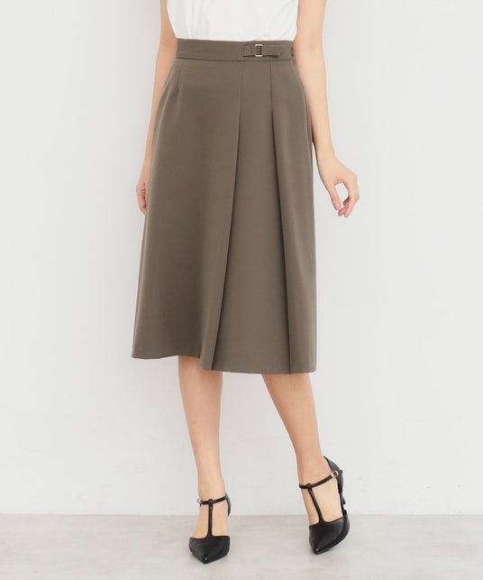 アシンメトリーに入ったタックが上品なフレアスカート。