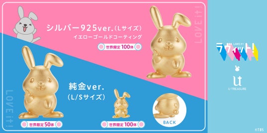 このたびの新作は、「ラッピー」を純金フィギュア(K24)Lサイズ・Sサイズと、シルバー925ver.フィギュア(イエローゴールドコーティング)にて再現しました。ジュエリー職人が熟練の技術で細部までこだわった逸品です。