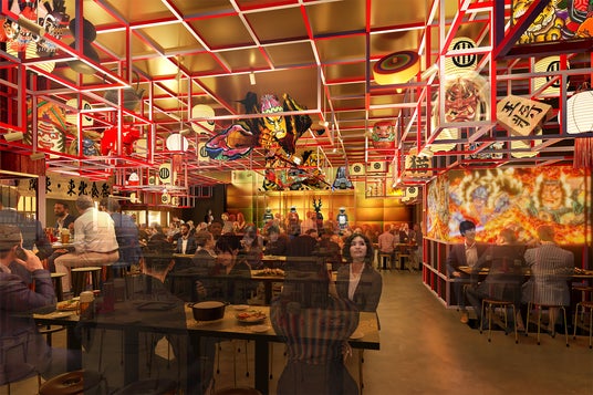 “横丁”エリアでは、1階に日本全国各地の食材とB級グルメが楽しめる地域別酒場の集合体『シンバシyokocho 武将~BUSHO~』、2階には、中華、韓国、タイ、日本(全国・そば&焼鳥)のアジア各国の店が集結した『シンバシyokocho 亜細亜 ~ASIA~』がオープンいたします。本エリアでは1階と2階が吹き抜けの構造となっており、それぞれの世界観を空気で繋げ、バラエティ豊かなお食事をお楽しみいただけます。当社の人気飲食施設である“横丁”で、食事だけではなく、食を通じた体験自体をお楽しみいただける空間にしておりますので、是非オープンをお楽しみにお待ちください。